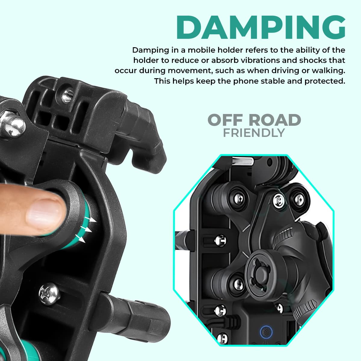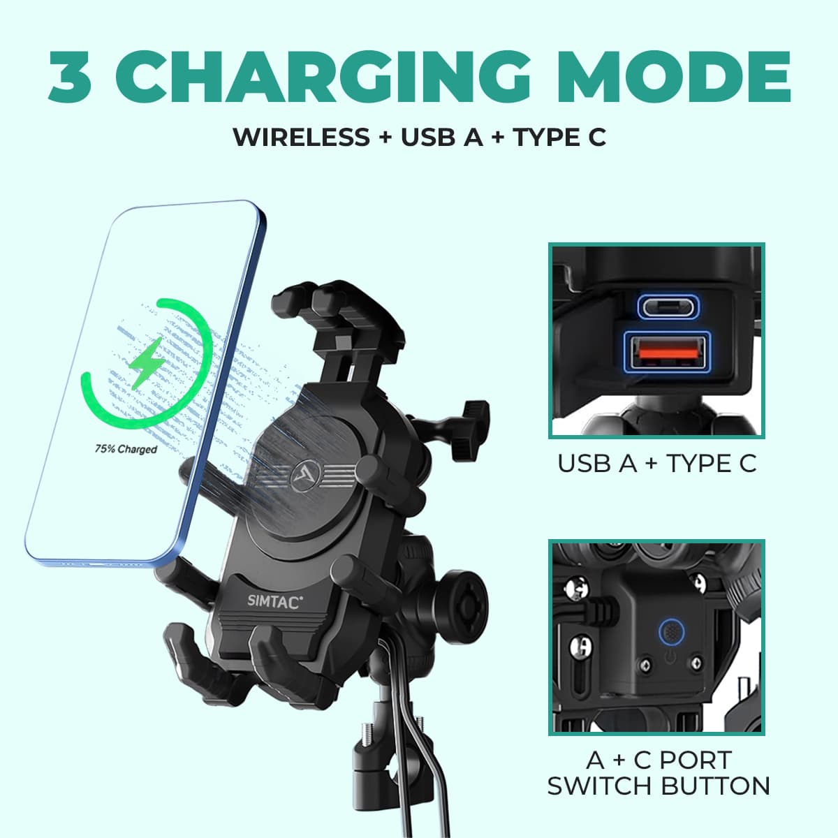 Simtac Octo Grip MH03WC-PRO is a next-gen motorcycle mobile holder crafted for riders who seek robust grip, premium durability, and on-the-go charging. Made with high-grade aluminum and ABS, it features universal phone compatibility, 360° rotation, anti-theft detachment, and an advanced vibration damper. With wireless, USB-A, and Type-C charging support, this holder ensures your phone stays powered and protected—no matter how rough the ride gets. Perfect for GPS, calls, and music on the move.